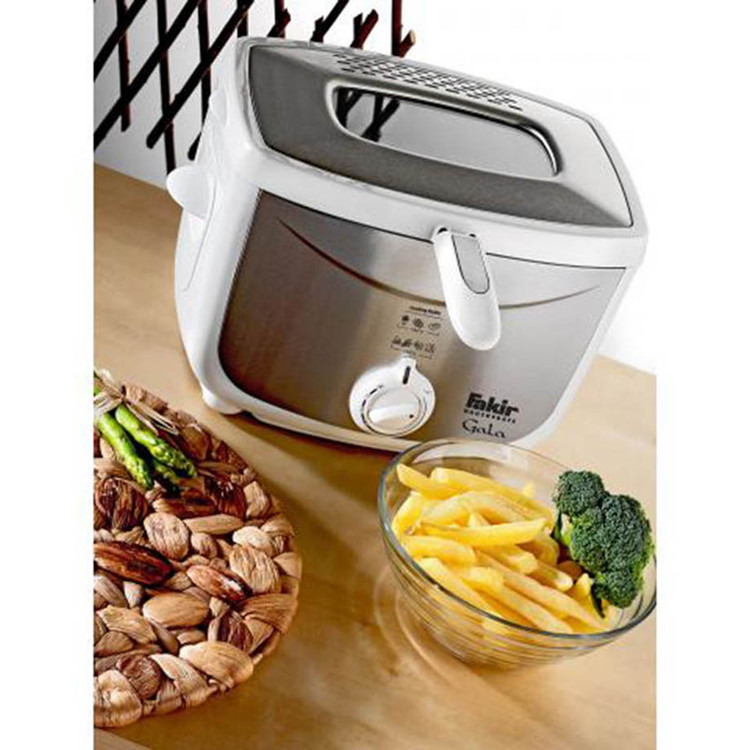 سرخ کن فکر مدل Gala دارای بدنه ای از جنس پلاستیک و استیل می باشد، که ترکیب این دو باهم در دو رنگ متفاوت زیبایی بیشتری به آن بخشیده است. برای قرار گیری مواد غذایی مانند: مرغ، سیب زمینی و… در داخل سرخ کن گالا، یک توری فلزی تعبیه شده است که دارای دسته پلاستیکی برای عایق بودن در برابر حرارت و جلوگیری از آسیب به دست می باشد.