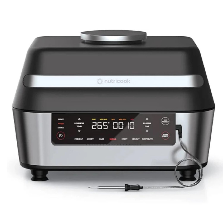 سرخ کن و گریل نوتریکوک مدل AFG960 دستگاه باکیفیت، قدرتمند و هوشمند 1760 واتی است که با 6 برنامه طبخ، پخت 5 نوع مواد غذایی پروتئینی، دماسنج هوشمند، 5 سطح درجه حرارت و ظرف پخت 8.5 لیتری، سرخ کردن و کباب کردن غذاها در فضای باز را شبیه سازی کرده و این امکان را فراهم کرده به راحتی و سریع از غذاهای کبابی سالم و خوشمزه لذت ببرید.