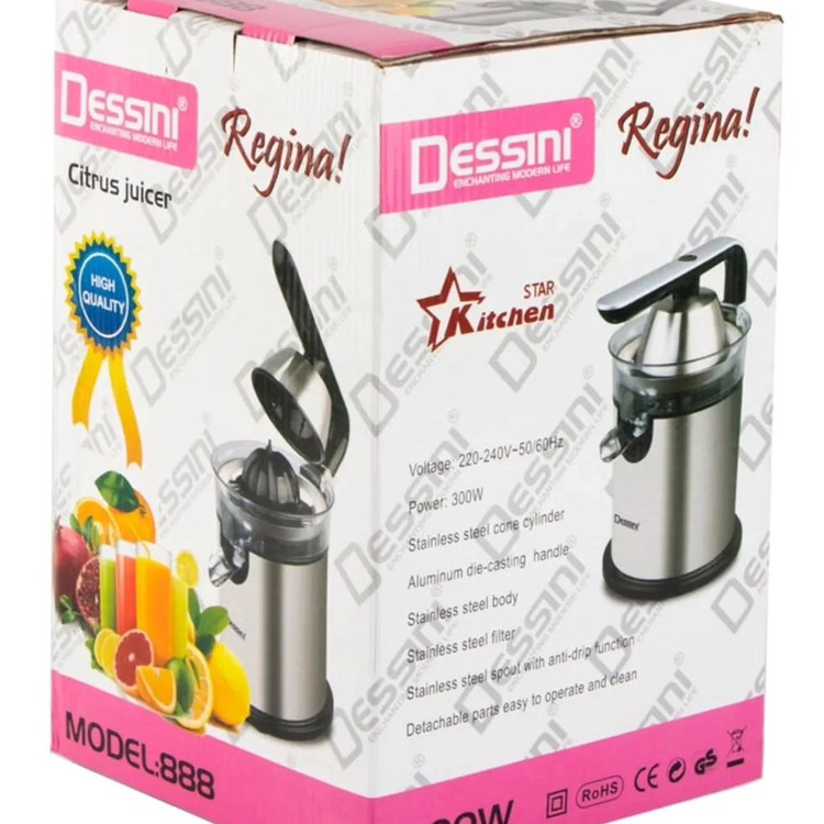 تنها کافیست میوه را به دو نیم تقسیم کرده و میوهی نصف شده را بر روی سری آب مرکبات گیر قرار داد. و با فشردن اهرم فشاری عصارهی میوه آماده گردد. سیستم ضد چکه و کم صدا بودن، از دیگر مزایای آب مرکبات گیری دسینی به شمار می رود. همچنین زیر دستگاه پایه هایی قرار داده شده است.که مانع از لغزش و افتادن دستگاه در حین آب گیری می شود.