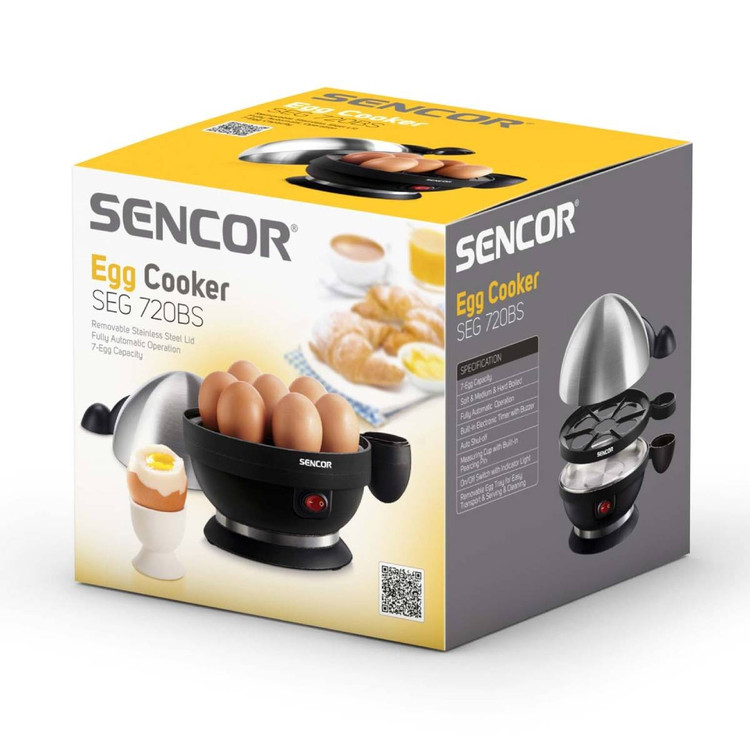 بدنه تخم مرغ پز سنکور SEG 720BS از جنس پلاستیک است و دارای یک ظرف اصلی استیل و قابل جداشدن، یک مخزن آب، یک درب استیل ضد زنگ و یک المنت حرارتی بوده و به گونه ای طراحی شده است که تخم مرغ ها بر روی سینی قرار می گیرند و با بخار آب داخل مخزن، آب پز می شوند. تعداد تخم مرغ ها بستگی به میزان آب داخل مخزن دارد، به طوری که اگر 7 عدد تخم مرغ را داخل سینی بچینید، لازم است مخزن آب پر باشد و اگر آب کمتری داخل مخزن قرار دارد، لازم است تخم مرغ های کمتری را بپزید. هرچند این دستگاه مجهز به سیستم ایمنی برای خاموش شدن خودکار پس از تمام شدن آب مخزن می باشد.