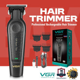 ماشین اصلاح VGR V-995 به همراه 4 عدد شانه با سایزهای 1.5، 3، 4.5 و 6 میلیمتر عرضه میشود که تنوع بالایی در طول اصلاح مو ایجاد میکند. اقلام همراه این دستگاه شامل برس پاکسازی، روغن مخصوص برای نگهداری تیغهها و سیم شارژر نیز میباشد. جنس بدنه این مدل از ABS مقاوم ساخته شده و نشانگر میزان شارژ باتری، کاربر را از وضعیت شارژ دستگاه مطلع میسازد. طراحی ارگونومیک آن نیز باعث میشود که در طول استفادههای طولانی، دست کاربر خسته نشود و کنترل بهتری بر روی دستگاه داشته باشد.