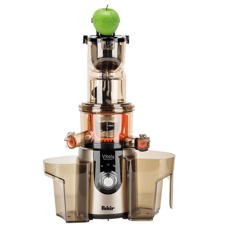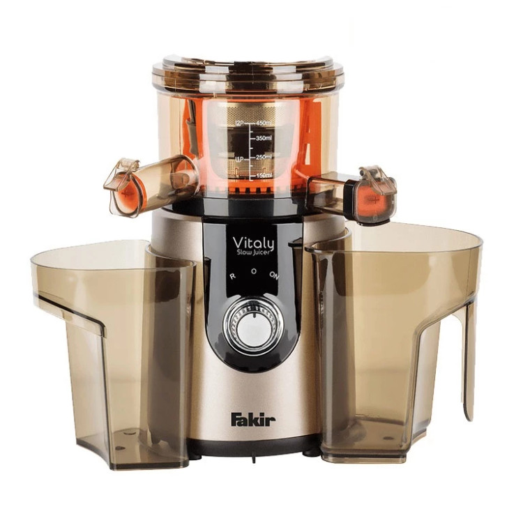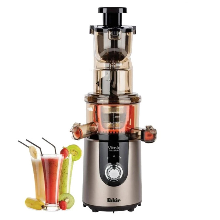 توان : ۲۰۰ وات (موتور گیربکسی) ،قابلیت گرفتن آب و عصاره انواع میوه های هسته دار و بدون هسته وسبزیجات ، قابلیت میکس کردن آب چند میوه ، درصد آبگیری خیلی بالا و تفاله خشک ، دارای دو پارچ برای آب میوه و تفاله ظرفیت ظرف اصلی : ۱ لیتر ،ظرفیت مخزن تفاله : ۰.۸ لیتر ،نوع موتور : DC ، سیستم ضد چکه : دارد ، پایه ضد لغزش : دارد ، عملکرد معکوس : دارد برای هنگام گیر کردن ، سرعت دستگاه : ۶۰rpm دور در دقیقه سیستم :SLOW SQUEEZING چلاندن به آرومی آبمیوه گیری فکر پالپی مدل VITALY دستگاهی خوش ساخت می باشد که ظاهری شبیه به عصاره گیر دارد و رنگ بدنه ی آن نیز نقره ای می باشد. شما می توانید به وسیله ی این دستگاه نوشیدنی های متنوعی را تهیه کنید. به ویژه در فصول گرم سال مانند تابستان که مصرف نوشیدنی های خنک و متنوع بسیار زیاد می شود، وجود چنین دستگاهی در هر خانه می تواند کارساز باشد. همانطور که می دانید مصرف آبمیوه های طبیعی تبدیل به امری مرسوم در جامعه ی امروزی شده است. و اکثر افراد برای حفظ سلامتی جسم خود ترجیح می دهند که از آبمیوه های خانگی و طبیعی استفاده کنند. جنس بدنه ی این محصول از پلاستیک مقاوم ساخته شده است که در مقابل ضربه ها و فشارهای مختلف دچار آسیب نخواهد شد.تفاله گیر : یکی از مهم ترین مزیت های این دستگاه آبمیوه گیری این است که دارای مخزن تفاله گیر می باشد. وجود مخزن تفاله گیر سبب می شود که تفاله های میوه های مختلف در این مخزن قرار بگیرند و وارد نوشیدنی شما نشوند. در نتیجه نوشیدنی کاملا خالصی را می توانید به وسیله ی این دستگاه تهیه کنید. علاوه بر این، ورود تفاله به موتور دستگاه آبمیوه گیری میتواند آسیب های جدی به آن وارد کند که وجود چنین مخزنی از این اتفاق نیز جلوگیری خواهد کرد. ظرفیت مخزن تفاله ی این دستگاه آبمیوه گیر برابر با هشتصد میلی لیتر است. تیغه : جنس تیغه های این آبمیوه گیر نیز از استیل ضد زنگ ساخته شده است. که مقاومت و دوام بالایی دارد و در اثر شستشوی پی در پی دچار زنگ زدگی نمی شود. این تیغه ها بسیار بُران هستند و به همین سبب به افزایش سرعت عمل دستگاه کمک شایانی می کنند. اجزای همراه :فرچه تمیز کننده و دسته فشار دهنده و کاسه ها